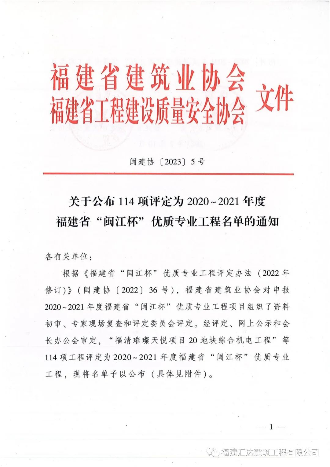 乐动(中国)官方承建的城发·福郡智能化项目喜获“闽江杯”优质专业工程